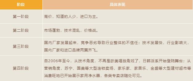 從中國家用凈水器的發(fā)展過程及技術(shù)趨勢(shì)來看,凈水器在國內(nèi)的發(fā)展大致可以分為以下四個(gè)階段: