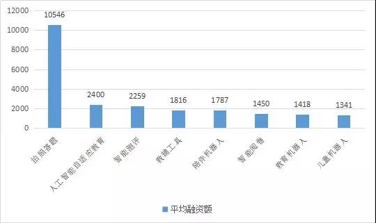 人工智能自適應(yīng)教育項(xiàng)目的融資事件數(shù)量很少排在倒數(shù)第二的位置,但平均融資額卻達(dá)到了第二??梢婋m然行業(yè)處于早期階段,但相對(duì)于其他細(xì)分領(lǐng)域來說更受資本的青睞。