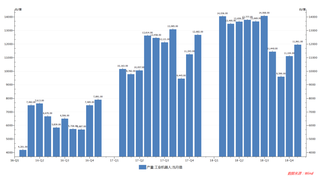 2018年1-12月,我國工業(yè)機(jī)器人產(chǎn)量達(dá)14.7萬臺(tái),同比增長12.2%;其中12月份產(chǎn)量達(dá)11961臺(tái)。受國內(nèi)宏觀經(jīng)濟(jì)下行,下游汽車、3C、新能源等行業(yè)投資放緩和中美貿(mào)易戰(zhàn)的影響,國內(nèi)工業(yè)機(jī)器人行業(yè)發(fā)展壓力逐步顯現(xiàn),6月、7月、8月增幅相比前幾個(gè)月35%的增速大幅下降。但工業(yè)機(jī)器人行業(yè)短期的增速放緩并不能改變機(jī)器代人的大趨勢(shì)。我國自動(dòng)化改造空間巨大,制造業(yè)轉(zhuǎn)型升級(jí)迫切;人口紅利逐步消失,老齡化問題嚴(yán)重,勞動(dòng)力出現(xiàn)短缺;疊加國家政策的大力支持,我國工業(yè)機(jī)器人行業(yè)未來發(fā)展空間仍然巨大。
