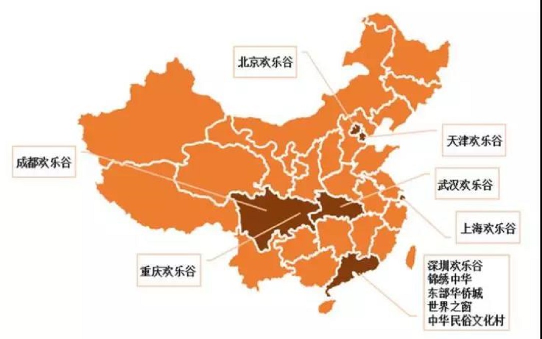 華僑城文旅板塊的重中之重是“歡樂谷”,已在深圳、北京、成都、上海、武漢、天津、重慶這7個城市形成連鎖經(jīng)營,南京、西安歡樂谷在建設(shè)中?!皻g樂谷”的布局集中在經(jīng)濟(jì)發(fā)達(dá)的一線城市、直轄市和省會城市,重點布局深圳。近年來,除了總部深圳,華僑城在中國旅游資源最豐富的區(qū)域如云南、海南、陜西、四川、山西、北京、河北等地,廣泛布局全域旅游新業(yè)務(wù)。