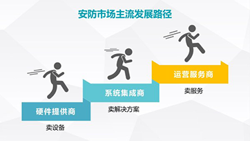 對(duì)比國(guó)外市場(chǎng),我國(guó)安防運(yùn)營(yíng)服務(wù)規(guī)模占比顯著偏低,將成為廠商未來(lái)布局的重點(diǎn)。因此要加快運(yùn)營(yíng)服務(wù)市場(chǎng)發(fā)展步伐。安防運(yùn)營(yíng)服務(wù)是安防產(chǎn)業(yè)的重中之重,是全球安防產(chǎn)業(yè)未來(lái)發(fā)展的趨勢(shì)。在技術(shù)升級(jí)、產(chǎn)品同質(zhì)化和成本的降低的背景下,產(chǎn)品市場(chǎng)的利潤(rùn)空間逐漸被壓縮,從硬件提供商(賣設(shè)備)——系統(tǒng)集成商(賣解決方案)——運(yùn)營(yíng)服務(wù)商(賣服務(wù))已成為主流發(fā)展路徑。