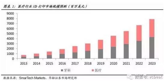 根據(jù)SmarTech《牙科3D打印2015:一個十年的機(jī)會預(yù)測與分析》中的預(yù)測,3D打印技術(shù)在牙科領(lǐng)域的市場規(guī)模到2016年會達(dá)到20億美元,2020年銷售規(guī)模可上升至31億美元。