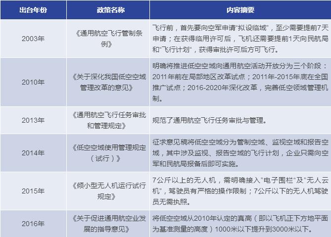 我國對低空空域的監(jiān)管十分嚴(yán)格,無人機(jī)屬于民航的一個分支,無人機(jī)市場的發(fā)展與國務(wù)院、中央軍委空中交通管制委員會和中國民航局的相關(guān)政策規(guī)定密切相關(guān)。