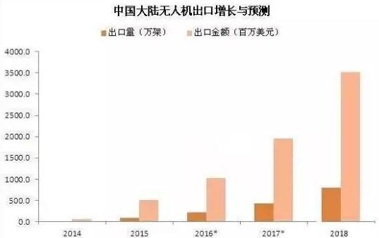 據(jù)國家海關(guān)數(shù)據(jù)統(tǒng)計(jì),2015年中國大陸出口無人機(jī)89.1萬架,同比增長427.2%;出口金額5.15億美元(約合32.7億人民幣),同比增長730.6%。主要出口地區(qū)依次是香港、北美和歐盟,平均出口價折合人民幣約3670元。其中,出口香港的40%又轉(zhuǎn)銷到北美和歐盟。2015年中國大陸進(jìn)口無人機(jī)14.5萬架,同比增長1350%;進(jìn)口金額1.1億美元,同比增長83.3%。平均進(jìn)口價折合人民幣約4817元。目前中國大約有400個無人機(jī)制造商,是全球70%的無人機(jī)需求市場的供貨商。
