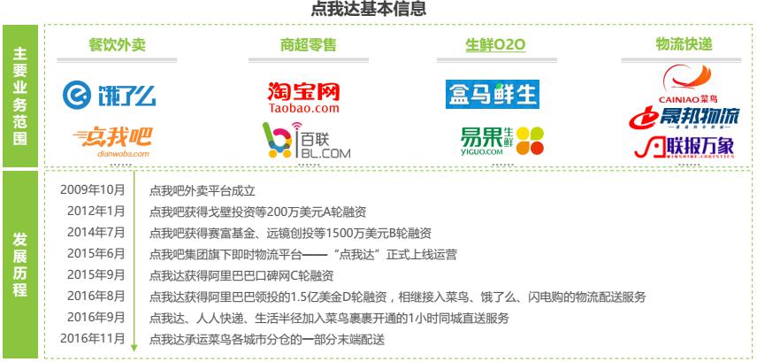 即時物流平臺點我達脫胎于外賣平臺點我吧,憑借出色的運營和調(diào)度能力快速發(fā)展。2016年7月,獲得阿里領(lǐng)投的1.5億美金D輪融資,并接入菜鳥網(wǎng)絡(luò)城市配送體系,成為阿里物流布局戰(zhàn)略重點。相較于其他即時物流平臺,點我達擁有淘系電商龐大的資源背景作為支撐,訂單來源除O2O平臺之外還包括物流、電商等,在競爭中占據(jù)絕對優(yōu)勢。