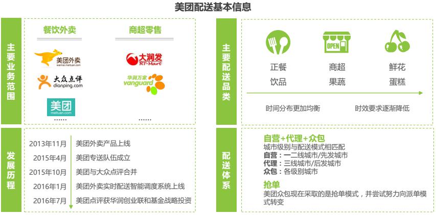 2017年初,美團外賣配送日訂單量已經(jīng)超過900萬單,美團配送團隊完成的訂單比例逐步提升,配送能力日漸增強?;诿缊F外賣入駐商家類型的多元化,美團配送的品類也在不斷擴展。為快速開拓三四線城市的市場,美團外賣采用“自建+加盟代理+眾包”的運力組織形式,適應(yīng)不同市場的需要。