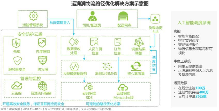 2016年底,運滿滿攜手阿里云,發(fā)布了“牛魔王”人工智能調(diào)度系統(tǒng),結(jié)合運滿滿的數(shù)據(jù)和用戶場景、以及阿里云的算法團隊,共同推動干線配貨人工調(diào)度朝著智能化方向推進?!芭D酢毕到y(tǒng)是基于云計算、大數(shù)據(jù)、移動互聯(lián)網(wǎng)和人工智能技術(shù)的公路物流領(lǐng)域高新技術(shù)綜合應(yīng)用的典型代表,可以實現(xiàn)服務(wù)車主與貨主的智能車貨匹配、智能實時調(diào)度、智能標(biāo)準(zhǔn)報價及對物流信息全程追蹤和可視化,顯著提升公路干線物流貨源、車輛、路線、價格匹配速度、精準(zhǔn)度和運輸組織效率。