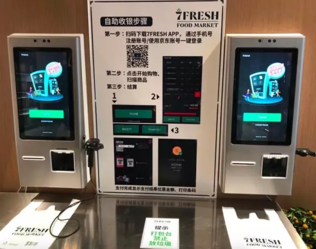 選購完畢,消費者可在7fresh店內實現(xiàn)自助結賬。具體操作如上圖所示,掃碼下載7fresh APP,通過手機號注冊賬號,點擊開始購物,掃描商品,進行結算。但對于此全用戶手動操作的過程,如果顧客有意遺漏幾件商品的掃描與付費呢?對于此問題,京東方面回應稱“7fresh 是面向高素質消費群體的生鮮超市”。