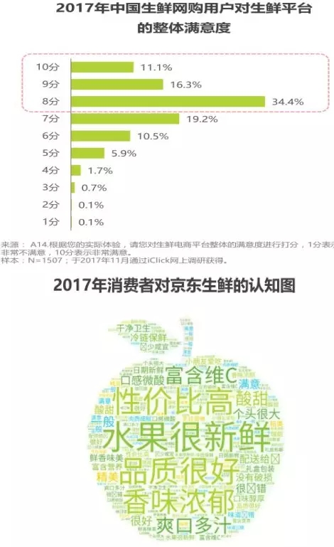 ? 用戶對生鮮網(wǎng)購整體滿意度較高;京東生鮮各維度滿意度均高于行業(yè)整體,物流配送方面優(yōu)勢明顯。