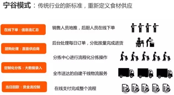 寧谷物配以“易訂貨”軟件為依托,欲打造區(qū)內最大的城市商用食材供應鏈平臺;其商業(yè)模式是用平臺化團購方式+城市內自建物流配送體系,實現(xiàn)對城市餐飲商戶所需食材的全方位供應。其生鮮B2B模式在銀川城區(qū)已初具規(guī)模,具有代表性,本報告將著重分析。