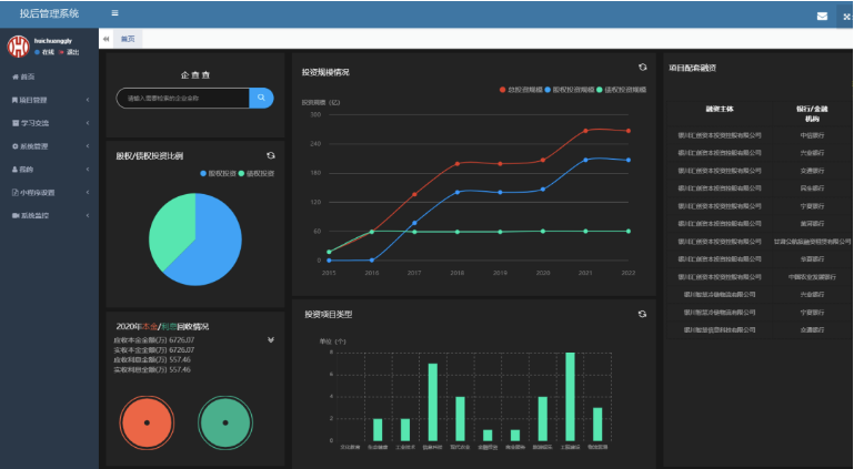為進一步全面推進集團公司國企改革三年行動工作落實落地,積極探索公司數(shù)字化轉(zhuǎn)型新路徑,推動數(shù)字經(jīng)濟與風險防控深度融合,著力提升公司合規(guī)風控及投后管理的標準化、規(guī)范化、信息化水平,銀川智慧信息科技有限公司根據(jù)集團公司關于國企改革、數(shù)字化轉(zhuǎn)型和高質(zhì)量發(fā)展的整體工作部署,打造了投后管理系統(tǒng)平臺,目前,已正式投入使用。平臺旨在通過投后管理系統(tǒng)平臺進行良好的投后管理,為化解風險提供精準有效的數(shù)據(jù)支撐,減少或消除潛在投資風險,保障國有投資安全,實現(xiàn)國有資產(chǎn)的保值增值。